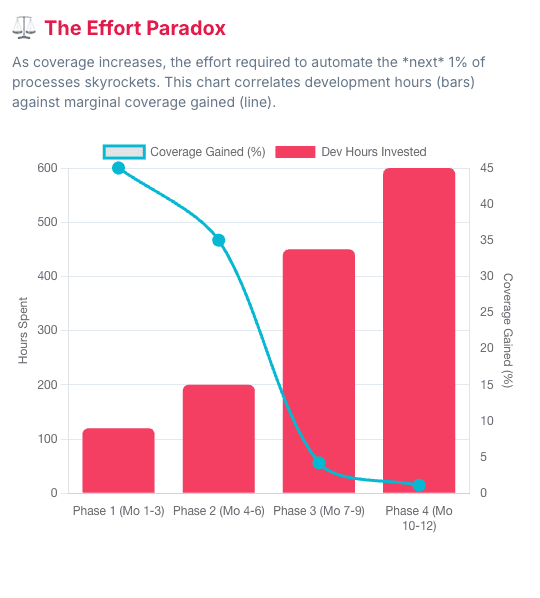 That’s half a person. Every week. Forever. At that point, your “automation initiative” is not a project. It’s a subscription.