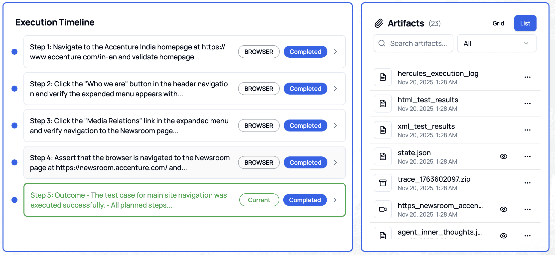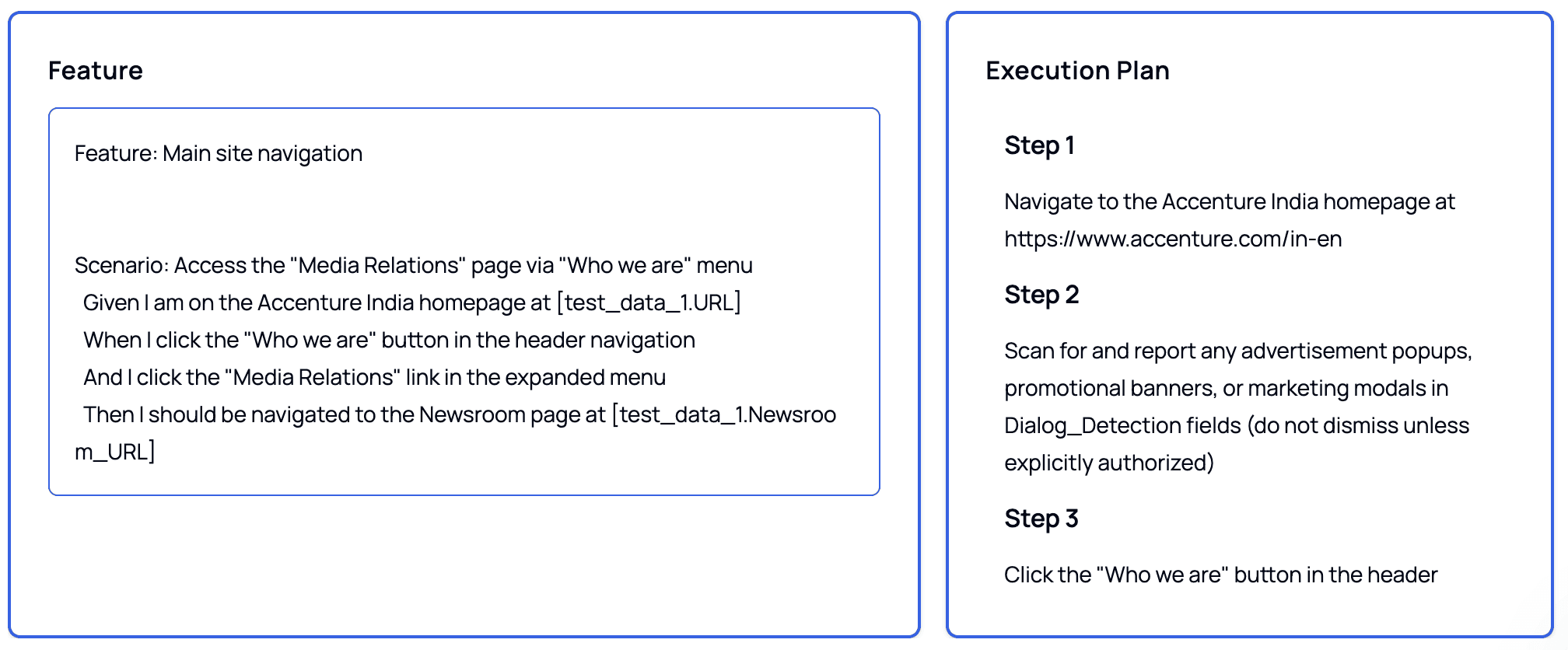 We ran automated test cases on Accenture’s website to simulate real-world scenarios and usage. Below is a snapshot of how the test performed.