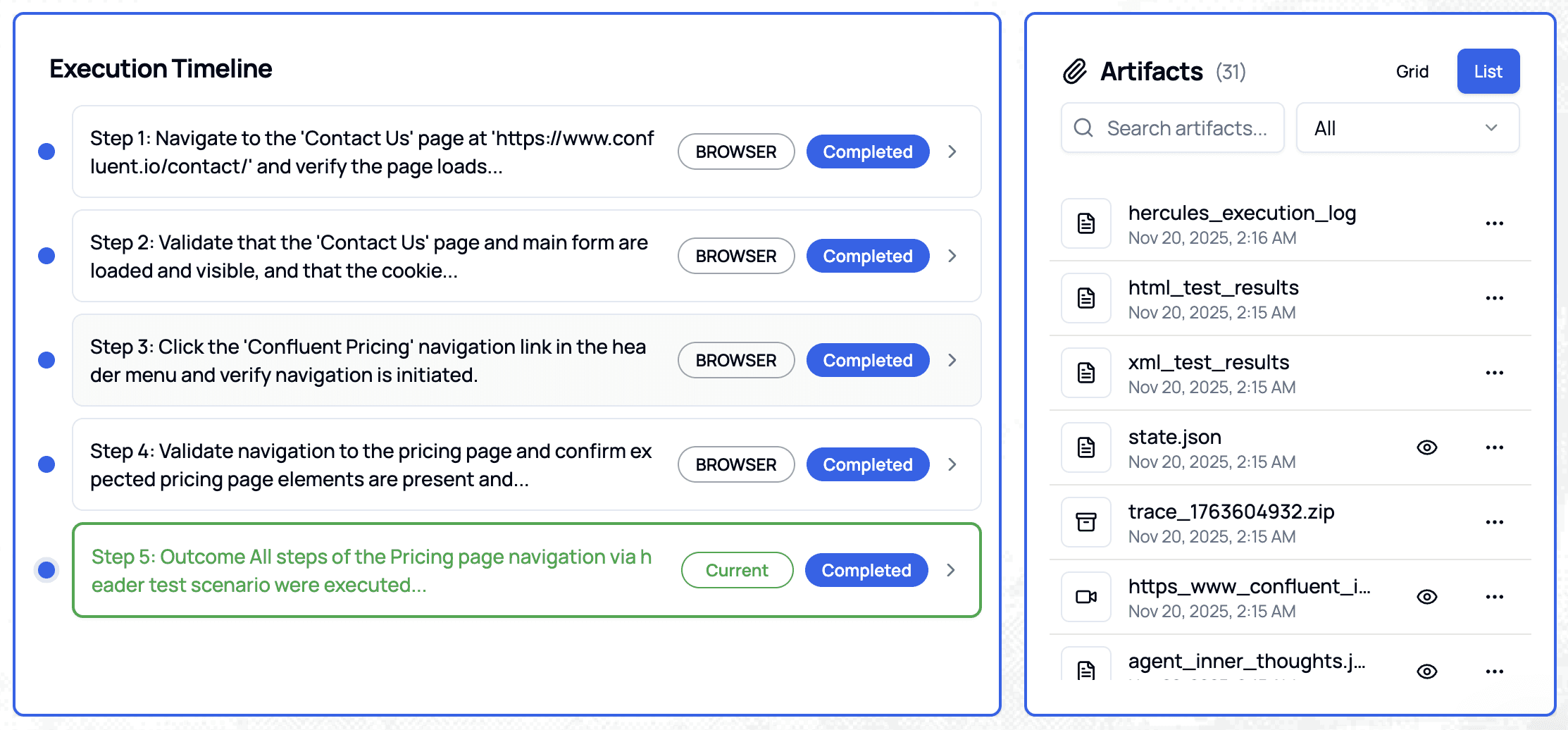 We ran automated test cases on Confluent's website to simulate real-world scenarios and usage. Below is a snapshot of how the test performed.