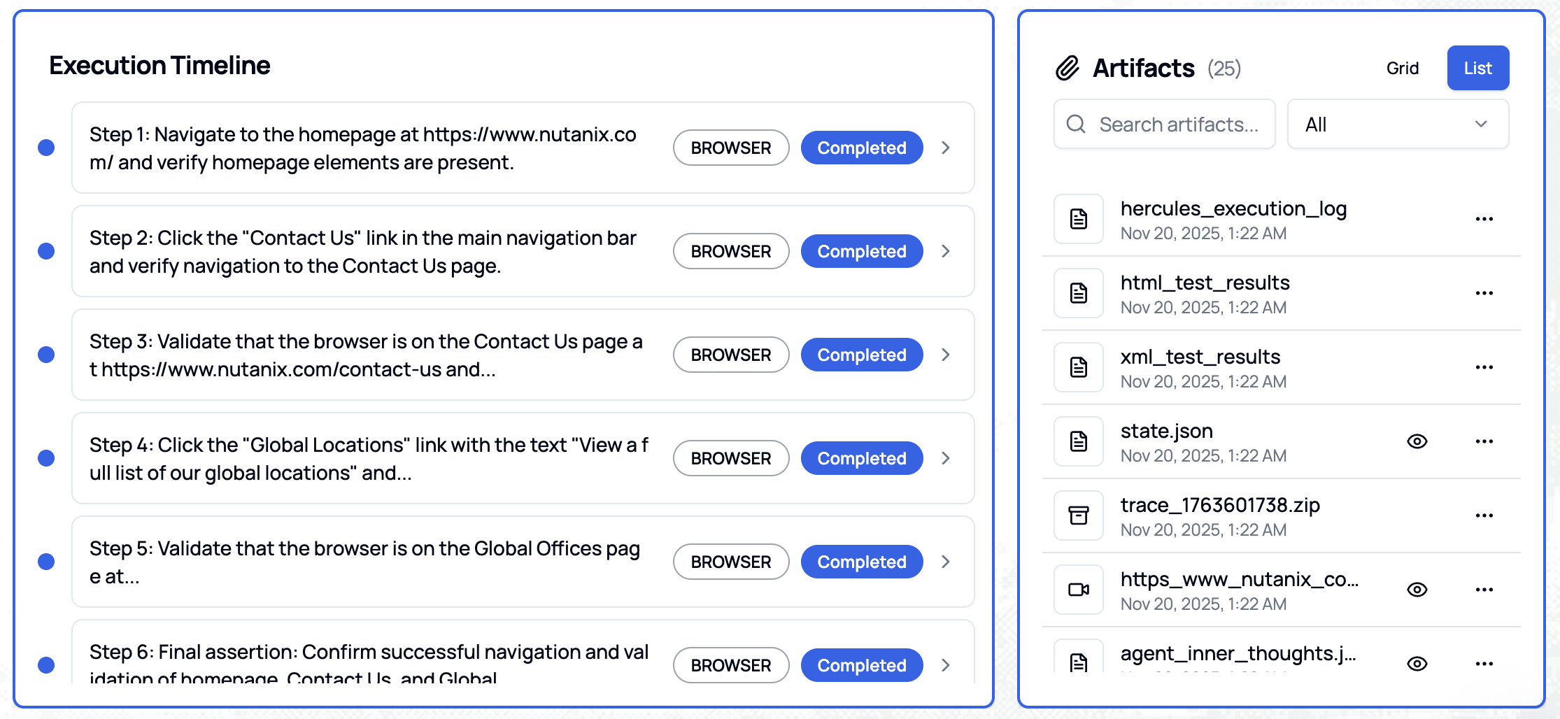 We ran automated test cases on Nutanix's website to simulate real-world scenarios and usage. Below is a snapshot of how the test performed.